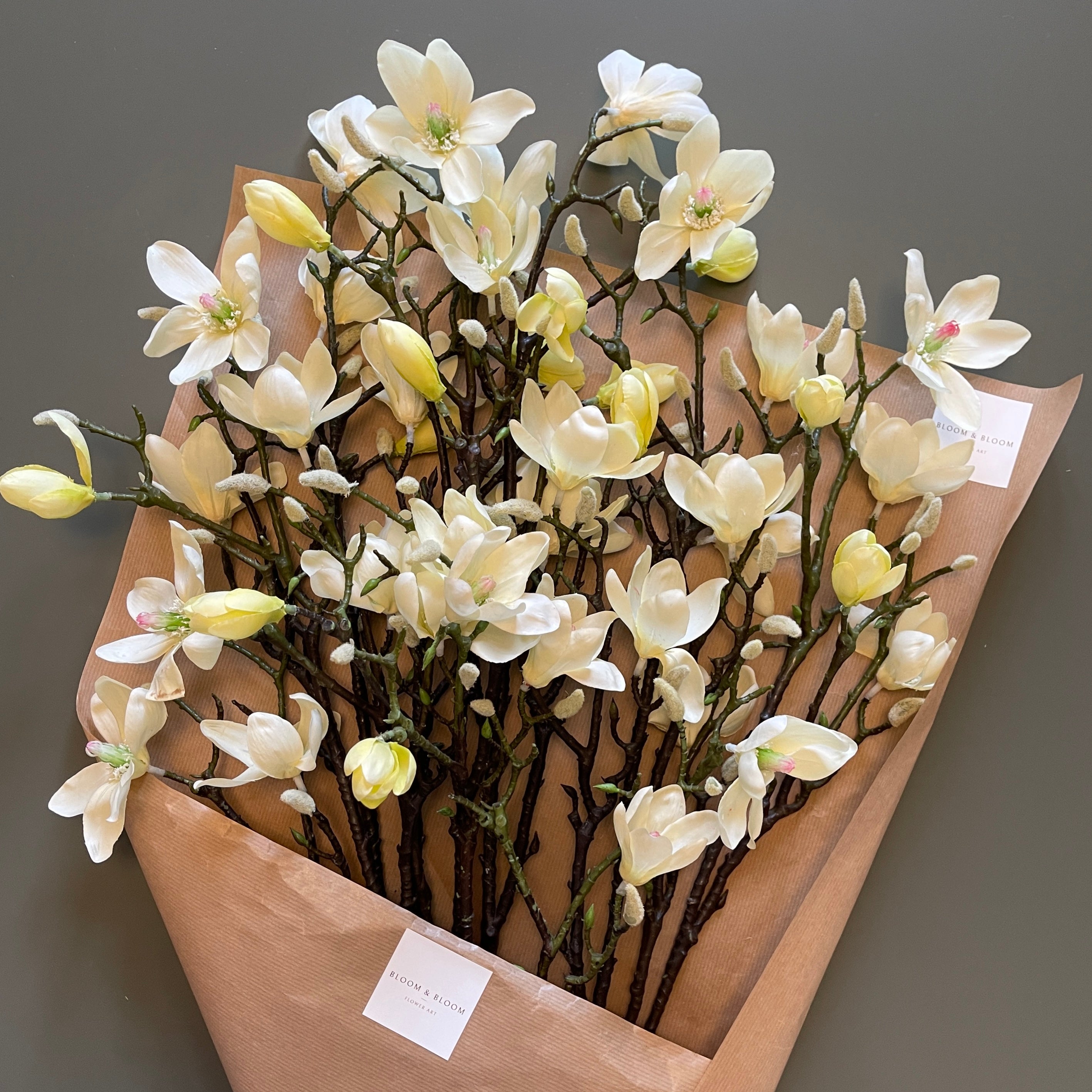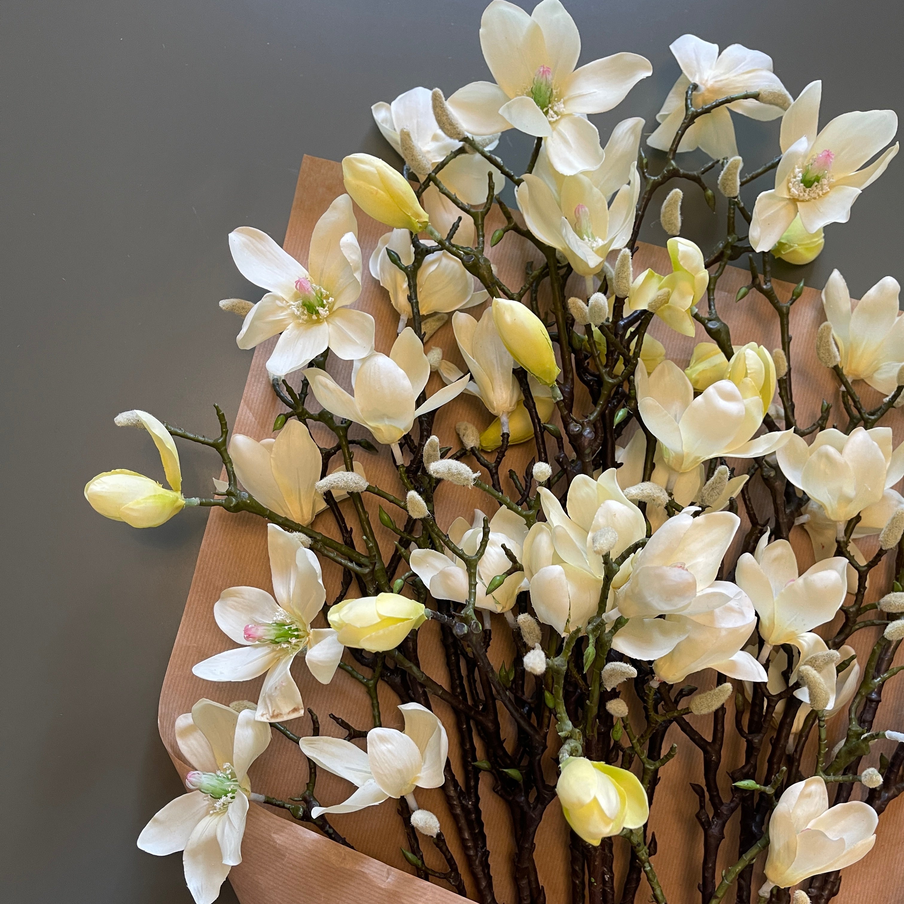 Soft, refined and beautifully realistic. Margot cream brings effortless elegance to any space. With creamy magnolia petals, hints of pale lemon and a delicate blush centre, each stem is crafted to look and feel like the real thing. Available in 7 or 14 stem. This arrangement makes a subtle yet striking addition to your space.