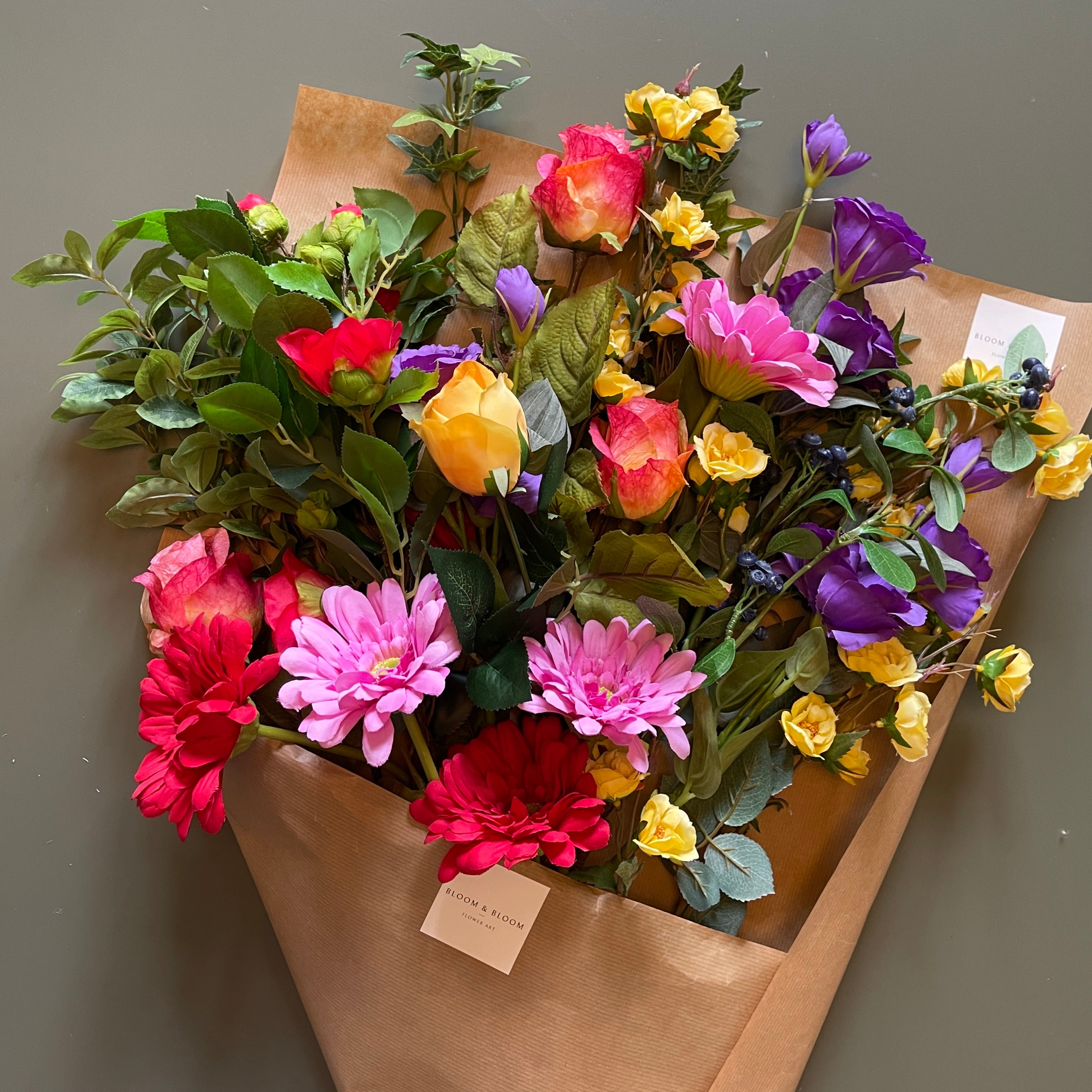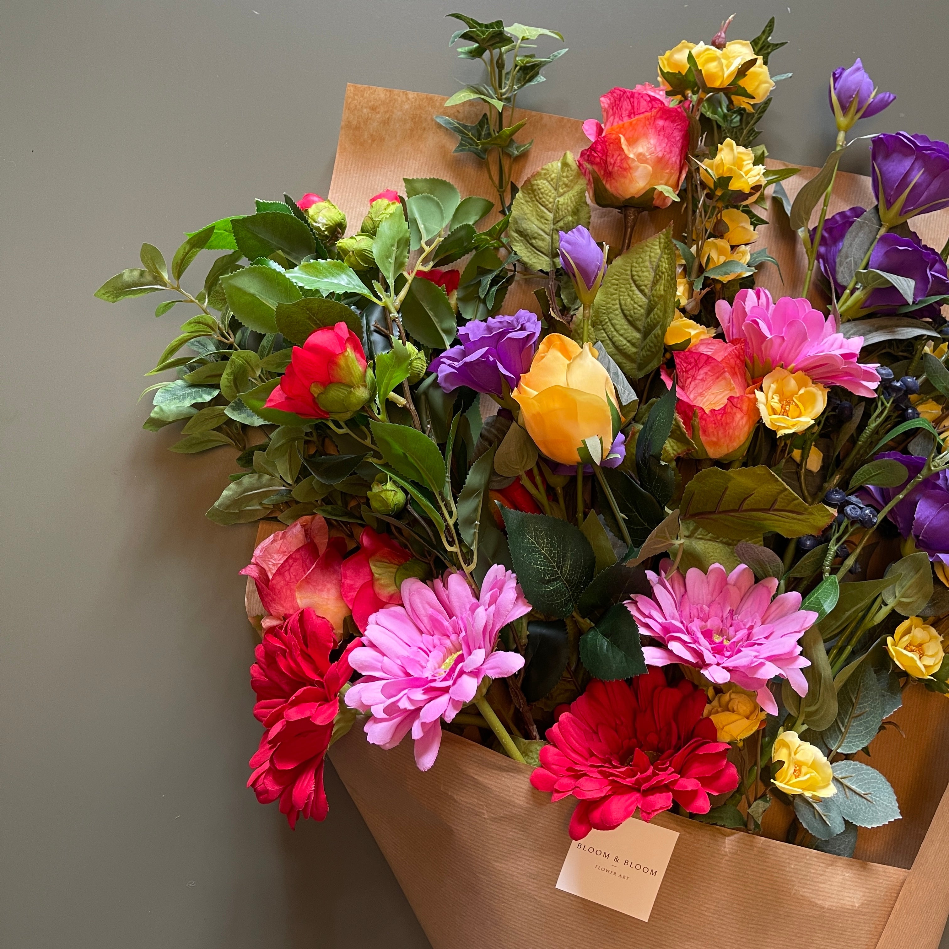 A cheerful burst of colour, Matilda is a joyful arrangement full of life and character. With a vibrant mix of Gerberas, Lisianthus, Roses, Lingonberries and more. This beautiful arrangement is one of our best sellers, bringing joy and warmth instantly to any space.